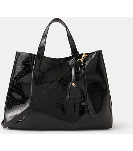 Accessorize Accessorize Black Faux Croc Skin Patent Tote Bag