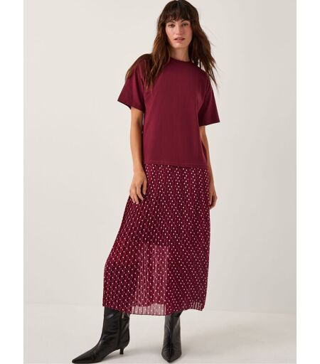 A casual affair. Designed to look like a T-shirt styled over a pleated midi, this dress offers a 2-in-1 look that defines smart-cazh. Soaked in Rioja red and patterned with polka dots, it ticks all the trend boxes. Style with knee-high boots for a look you can wear all season long. Lavable en machine. 100% de coton. ...