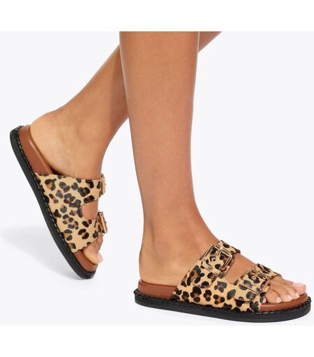 The KG Kurt Geiger Posie is a slip on sandals crafted from a bone leather. There are two straps across the foot with gold tone buckles. The footbed is moulded with a rope style detail around the sole. 100% Synthétique rubber. ...