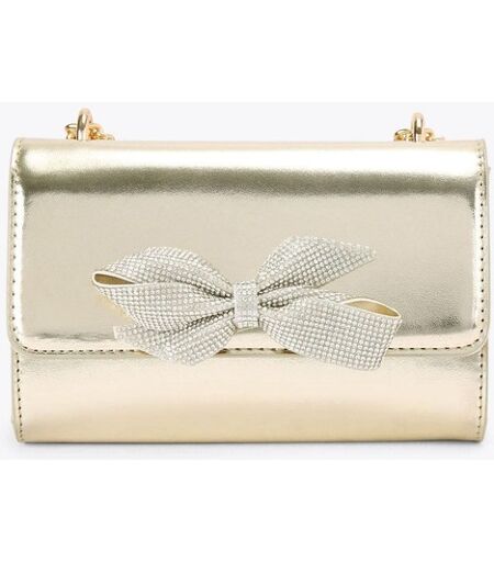 The Adore Clutch is a gold metallic bag. The front flap features a statement silver crystal encrusted bow. The silver chain strap can be worn across the body or doubled up on the shoulder. 100% Polyurethane. ...