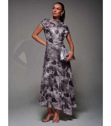 Jolie Moi Jolie Moi Robe Midaxi asymétrique drapée à col coupé Gris 40