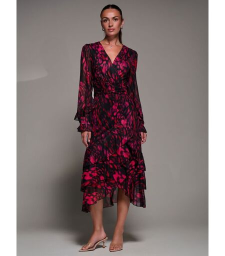 Long Sleeve Frill Detail Mesh Maxi Dress by Jolie Moi features a flattering wrap-style front with a soft V-neckline. Designed with delicate gathers at the side waistband for a beautifully draped silhouette. The skirt flows into a three-tiered frill hem with an asymmetric finish. Long sleeves are finished with elasticated cuffs that subtly flare at the wrist, adding a soft, feminine touch. Perfect for special occasions or standout evenings. Model's height - 170cm, and wears size 8. Length - 133cm ...