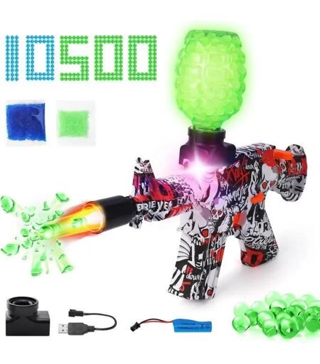 Pimpimsky Jouet Pistolet À Eau Électrique M416 Lumineux 10000 Bombe À Eau + 500 Balles Fluorescentes, Rouge