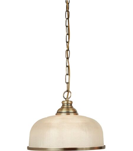 Searchlight - bistro ii - 1LT Suspension metal Laiton antique avec verre prismatique amplificateur Holophane E27 max 60w Diam 27cm