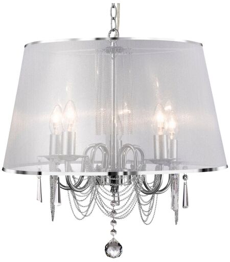 Searchlight - Suspension chaine chrome 5L venetian, Cristal clair Verre, Abatjour de voile Blanc