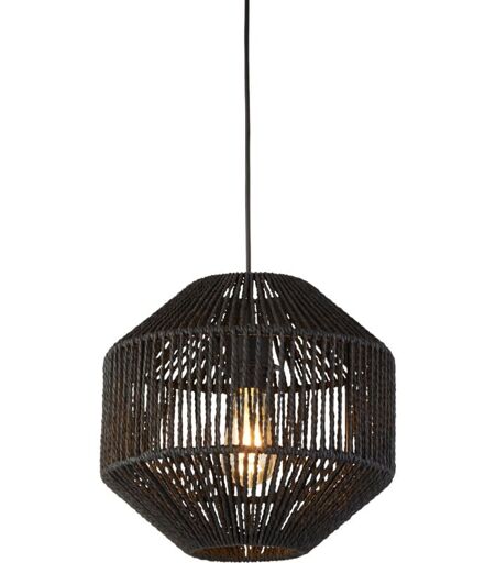 SEARCHLIGHT WICKER 1LT Suspension metal noir mat, abatjour corde naturelle Noir E27 Max 60w Diam 30cm