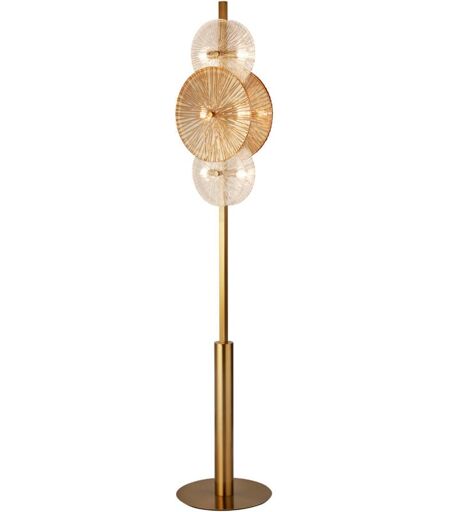Lampadaire sur pied 6 lumières G9 max 6x33w Métal Bronze, disques verres claires et ambrés Hauteur 151cm Diamètre 30cm ...