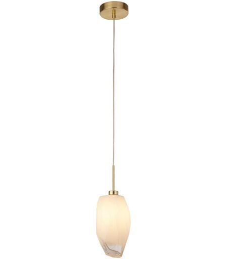 Searchlight - rocky Suspension métal laiton satiné, verre blanc Givré, G9 max 33w Larg 11cm Haut 120cm