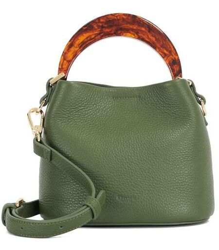 Elevated and elegant Dharla is the epitome of understated luxury. Crafted from buttery soft leather this refined handbag is defined by its structured circular resin top handle and gleaming gold hardware. The removable and adjustable cross-body strap allows for versatile styling whether held in hand or worn effortlessly over the shoulder. A sophisticated statement for the modern woman. Dessus 100% cuir, Doublure. et chaussette 100% de cuir. Semelle 100% caoutchouc. ...