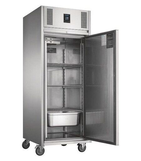Polar Armoire inox ventilée tropicalisée positive 550 Litres, 1 porte pleine GN 2/1, sur roulettes, 430 W, 220 V - MONO