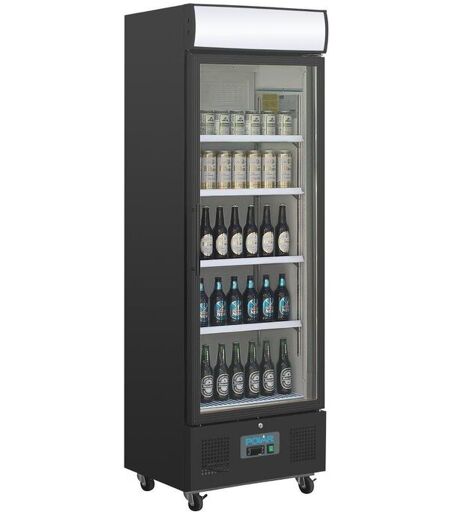 Polar Vitrine positive réfrigérée 368 Litres, 1 porte vitrée, avec bandeau lumineux, noire, 340 W, 220 V - MONO
