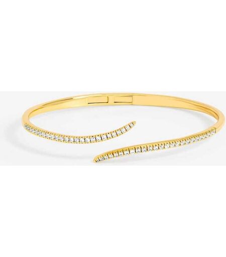 Our 18k Gold Plated and Pave Curved Open Bangle is expertly finished, designed to bring bold elegance to your everyday style. Featuring striking pave Crystals made to sparkle and finished in rich 18k gold plating, this statement piece adds a touch of timeless sophistication. It's the perfect addition to any jewellery collection. Fastening: Lobster Clasp. Width dimension: 50mm. Length dimension: 65mm. Material: 18K Gold Plated Base Metal. 100% Brass. ...