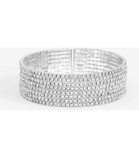 It is a statement piece designed to elevate any outfit. Featuring multiple rows of gorgeous crystals, this cuff delivers maximum sparkle at a minimal price! Sleek yet striking, its open cuff design allows for an easy, adjustable fit, making it perfect for everyone. Fastening: Cuff. Width dimension: 18mm. Length dimension: 172.8mm. Material: Silver-plated base metal. 100% Brass. ...