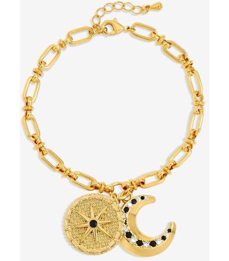 Our Inicio 14K Gold Plated Celestial Charm Bracelet is a must have trending piece that seamlessly blends trend and elegance, with a 14k gold finish this bracelet offers a luxurious feel. Fastening: Lobster Clasp. Width dimension: 22mm. Length dimension: 22mm. Chain Length: 22. Material: 14K Gold Plated Base Metal. 60% Laiton, 40% Zircone cubique. ...