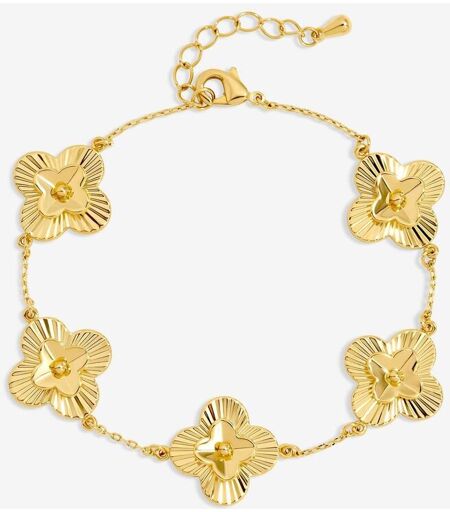 Inicio Inicio Gold Tone Diamond Cut Clover Station Bracelet