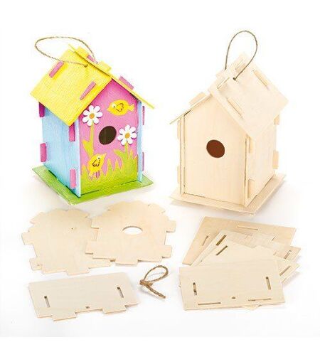 Baker Ross Wooden Birdhouse Kits Pack Of 2 For Kids To Make Decorate
