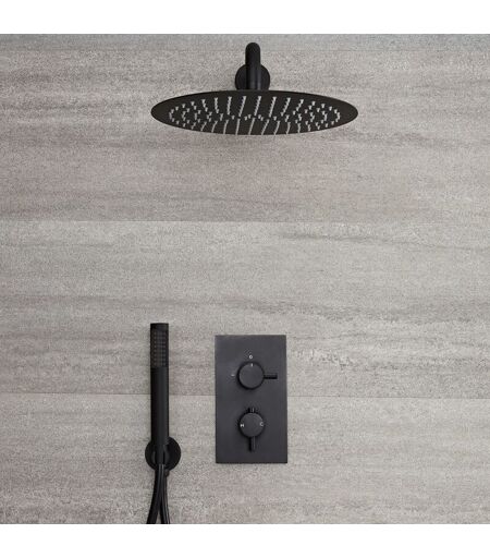 Hudson Reed - Kit de Douche - Mitigeur Thermostatique Encastrable&44 Pommeau de Douche Rond Ø30cm et Douchette - Noir - Nox