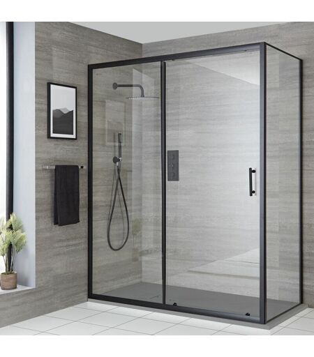 Nox - Douche Italienne d'Angle avec Porte Coulissante et Receveur de Douche Effet Texturé Gris Clair 120cm x 80cm - Noir - Hudson Reed