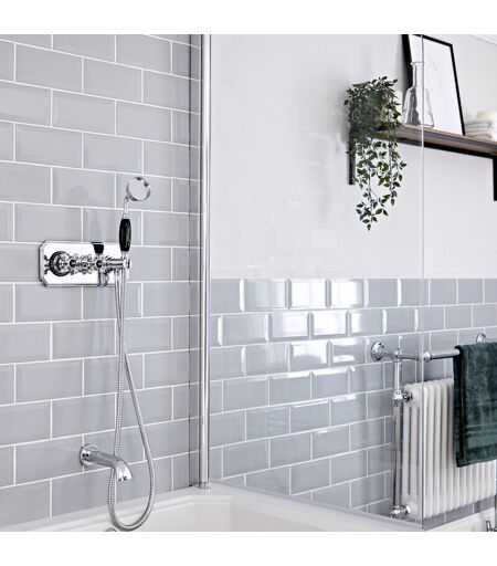 Hudson Reed - Elizabeth - Kit de Douche Thermostatique 2 Fonctions - Douchette et Bec Verseur Baignoire - Chrome et Noir