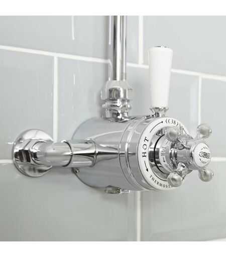 Hudson Reed Elizabeth - Kit de Douche Rétro - Mitigeur Thermostatique Chromé et Blanc