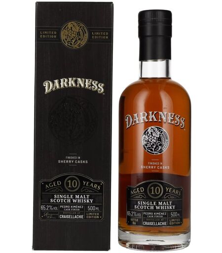 Les ténèbres ! Whisky Darkness CRAIGELLACHIE 10 Years Old PX CASK FINISH 65,2% Vol. 0,5l en boîte cadeau
