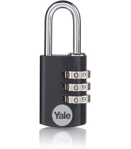 YALE -YE3CB/20/121/1/BK - Cadenas aluminium - combinaison 20 mm - anse acier - noir - code 3 chiffres - Pour casier - boîte outils
