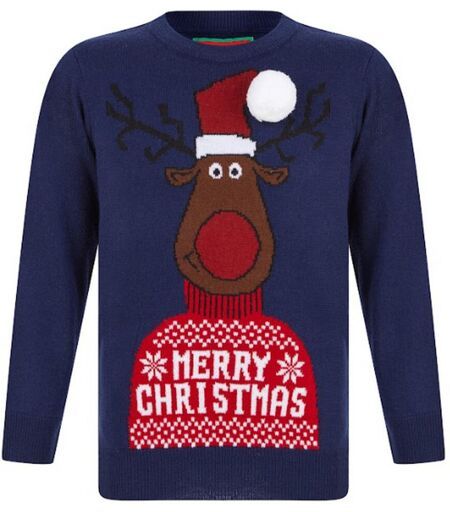 Merry Christmas Pull Garçon Noel REINDEER bleu marine 7/8 ans unisex