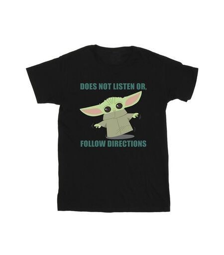 T-shirt enfant Disney The Mandalorian Does Not Listen Noir Disponible en taille fille. 12 ans,3 / 4 ans,5 / 6 ans,7 / 8 ans,9 / 10 ans. . Enfant > Fille > Vetements > T-shirt. ...