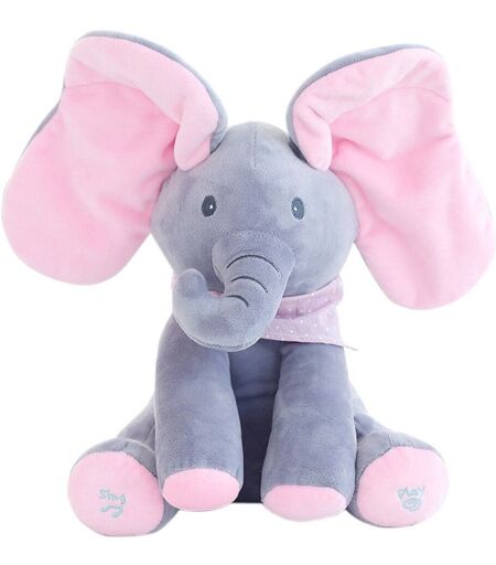 Eléphant En Peluche musique électrique éléphant Pour cache-cache jouet pour bébé -Rose&Gris