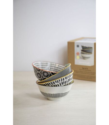 Que ce soit pour déguster vos céréales favorites pour le petit-déjeuner, une soupe crémeuse pour le dîner ou encore quelques boules de crème glacée pour le dessert, ce set de bols à motifs KitchenCraft vous accompagnera au quotidien. Ce set comprend 4 bols colorés aux motifs ''Monochrome'' assortis. Mêlant le noir et blanc à des couleurs vives, ils ajouteront une touche élégante et originale à tous vos repas. Chaque bol est doté d'un motif unique inspiré de formes simples et de célèbres motifs.Ils sont fabriqués en céramique durable et conviennent parfaitement à une utilisation quotidienne. Ils peuvent être passés au micro-ondes et au lave-vaisselle.Livré dans un joli coffret, ce set de bols fera un cadeau idéal à offrir. ...
