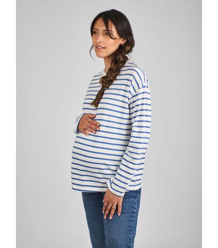 Jojo Maman Bébé JoJo Maman Bébé Blue & Cream Stripe Long Sleeve Boyfriend Maternity T-Shirt