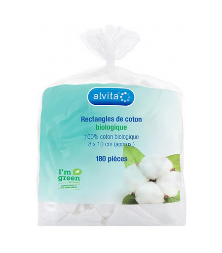 Parapharmacie > Bébé & Maman > Soins bébé > Change > Carrés de coton bébé Alvita Rectangles de Coton Bio x 180 - Carrés de coton bébé - Pharmacie en ligne LaSante.net