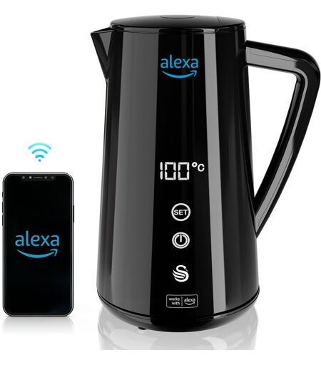 Swan - SK14650BLKNEU Alexa Bouilloire Électrique Intelligente wifi 1,5L, Sans Fil, Écran Tactile led 1800W Noir