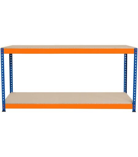 MONSTER SHOP Tabli Ajustable à 2 Niveaux S-Rax, Plan de Travail en Bois Aggloméré Robuste, Capacité 300kg, Bricolage Atelier Garage, Assemblage Sans Boulons,