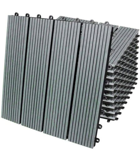 Donnez à votre jardin la cure de jouvence qu'il mérite, avec le lot de 66 dalles de terrasse en bois composite gris. Parfaites pour votre terrasse, votre balcon, votre piscine ou votre jacuzzi, ces dalles sont la solution de style extérieur simple et rapide. Ces dalles en bois composite de haute qualité sont dotées d'une fonction de verrouillage à connexion rapide, qui vous offre une installation facile et sans outil. Fabriqués en bois composite de qualité, nos dalles sont résistantes à l'eau et dureront pour plusieurs années d'utilisation. Avec une base en plastique durable, la terrasse reste hors du sol pour réduire les dégâts d'eau et la pourriture, gardant vos dalles neuves comme au premier jour. Utilisez votre imagination et créez dès aujourd'hui votre propre terrasse sur mesure. Vous pouvez poser les dalles de terrasse dans un système linéaire ou la conception en damier et d'autres conceptions intermédiaires. Leur installation ne pourrait pas être plus facile ; sans outils ...