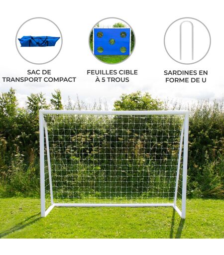 But De Football Keeper Goal De Foot - 2.4 M X 1.8 M - Léger, Transportable Et Facile À Monter - Séances D'entrainements, Jeux Entres Amis, Mini Foot[Sardines, Pinces & Sac De Transport Inclus]