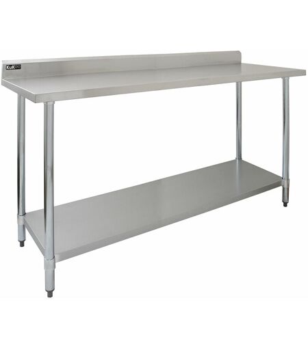 Les établis KuKoo sont faits d’acier inoxydable résistant à la corrosion et facile à nettoyer de type 430. Ils sont parfaits pour n’importe quelle cuisine allant du bistrot traditionnel au restaurant étoilé Michelin, jusqu’aux écoles et cafés. Caractéristique du produit : 183 cm de largeur GRATUIT 2 chiffons microfibre Etagère galvanisée et réglable pour ranger divers accessoires et équipements Conçu en acier inoxydable de type 430 Résistant à la corrosion et facile à nettoyer ; particulièrement utile pour cuisine des aliments acides tels que les tomates ou les fruits. Extension de 10 cm Les pieds ajustables peuvent être repositionnés afin de compenser un sol qui ne serait pas complètement plat Peut supporter jusqu’à 250kg Emballé à plat et facile à assembler Adaptez cette table professionnelle à votre cuisine : Le pied peut être repositionné afin de conserver une surface de travail place et les étagères galvanisées peuvent être remontées ou descendues pour ranger tous vos accessoires ...