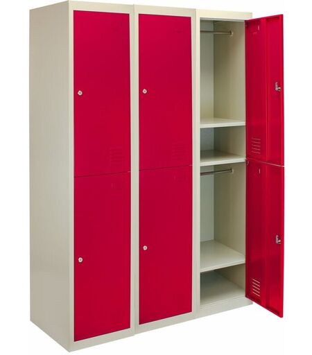 Casier Métallique Créez un lieu de stockage sécurisé pour votre personnel, vos collègues, vos clients ou vos étudiants avec ces vestiaires en acier à 2 portes. Chaque casier individuel a une étagère et un rail à l'intérieur, ce qui offre beaucoup d'espace pour suspendre les vêtements, ranger les articles de papeterie et garder les effets personnels en sécurité. 3 unités de casier - Dimensions : 45 cm P x 38 cm L x 180 cm H Un rail pratique et une étagère de rangement à l'intérieur de chaque casier GRATUIT 2 aimants pour personnaliser vos casiers, un petit cadeau parce que nous sommes gentils Fabriqué à partir d'acier solide et revêtu de poudre avec un corps gris et des portes Rouge Chaque porte a des évents pour faire circuler l'air et empêcher ces baskets de sentir Porte-carte nom/numéro sur le devant de chaque porte Mécanisme de verrouillage à came avec 2 clés pour chaque porte - vous donnant une pièce de rechange utile Casier Métallique - 2 Portes Offrant sécurité et espace pour ...