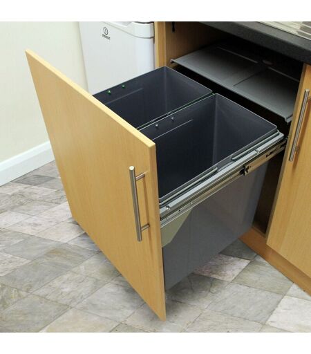 Monster Shop - KuKoo - Poubelles Coulissantes Encastrables de 90L pour Cuisine, Poubelles de Recyclage à Deux Bacs. 49,5cm(h) x 56,5cm(l) x 48,4cm(p)