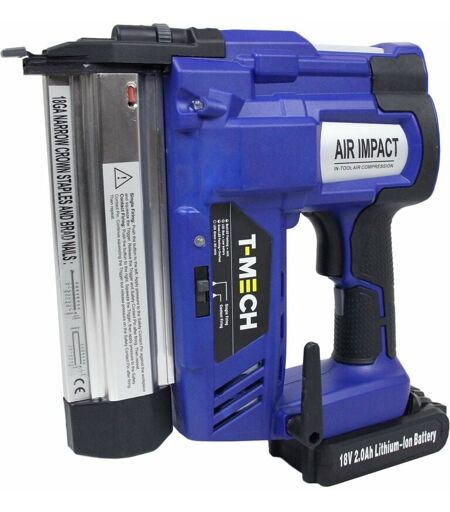 Agrafeuse-Cloueuse Electrique Sans-Fil 2 en1 avec Batterie 18V Li-Ion Supplémentaire, 300 clous et 300 agrafes Gratuits - T-mech