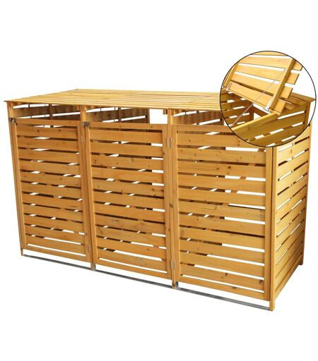 Monstershop Triple En Bois Poubelle À Roulettes Store Extérieur Jardin Verrouillable Poubelle Abri De Couvercle À Charnière