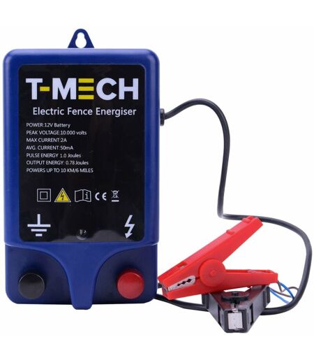 T-mech - Electrificateur de Clôture Electrique 12V Imperméable 1.0J 10KM Alimenté par Batterie Kit de Fixation pour Volailles, Bovins, Moutons,