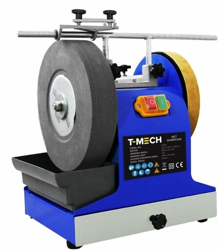 MONSTER SHOP T-Mech Affûteuse à Eau 200 w Pierre à Huile Cirage pour Métal Roue d'Affûtage à Cuir Guide d'Angle Meulage Rotatif [Accessoires incluses]