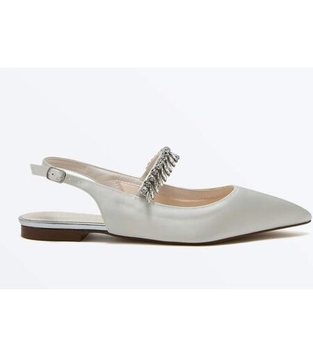 Freya is a true Rainbow Club icon. This pointed pair has a crystal-encrusted strap across the top of the foot. Buckled flat slingbacks, beautifully crafted from lustrous ivory satin. They can be paired up with our matching Nova Clutch. The Freya Flat is also available in a Standard Fitting. Upper - Other Materials, Lining and Sock - Other Materials, Sole - Other Materials. ...