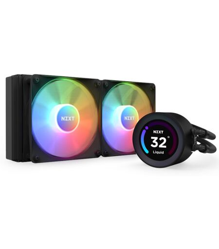 NZXT Kraken Elite 240 RGB. Type: Refroidisseur de liquide tout-en-un, Diamètre du ventilateur: 12 cm, Courant d'air maximum: 78,86 cfm, Pression d'air maximale: 2,57 mmH2O. Couleur du produit: Noir ...