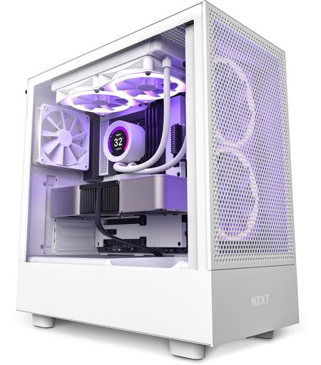 NZXT H5 Flow. Format: Midi Tower, Type: PC, Couleur du produit: Blanc. Prise en charge des diamètres des ventilateurs avants: 120,140 mm, Ventilateurs arrières installés: 1x 120 mm, Pris en charge des diamètres des ventilateurs supérieurs: 120 mm. Tailles de disques durs supportées: 2.5,3.5". Largeur: 227 mm, Profondeur: 446 mm, Hauteur: 464 mm ...