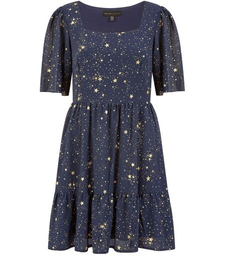 Be the star at any occasion this party season. This cute skater dress from Yumi boasts flowy sleeves, a square neckline and a cinched waist. The all-over star print on the dark backdrop truly reminds constellations in the night sky. Add metallic accessories for a celestial look. Lavable en machine. Coquille 100% Polyester. Doublure 100% polyester. ...