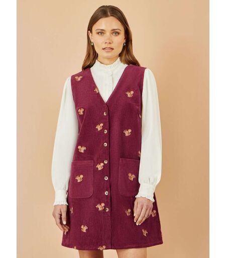 Yumi Yumi Burgundy Cord Button Through Pinafore Dress With Pockets Burgundy 44