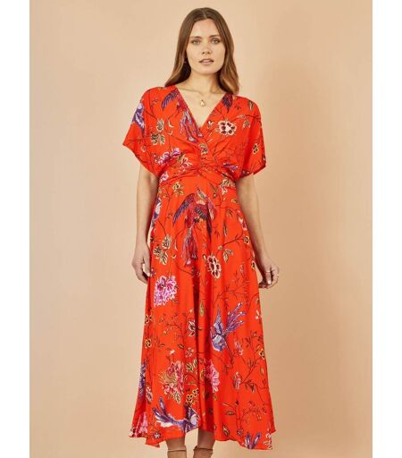 Yumi Yumi Orange Viscose Bird and Floral Print Kimono Midi Dress Orange 40