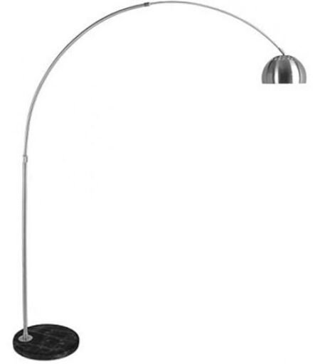 Lampadaire style (Base ronde). Aérien et terriblement élégant, peut être utilisé à la manière d'une suspension, grâce à ce long arc en acier qui suspend un abat-jour métallique en demi-sphère. Il éclairera vos intérieurs de manière efficace et superbement originale ! Dimensions : 180 cm x 38 cm x 210 cm (L x l x H) ...